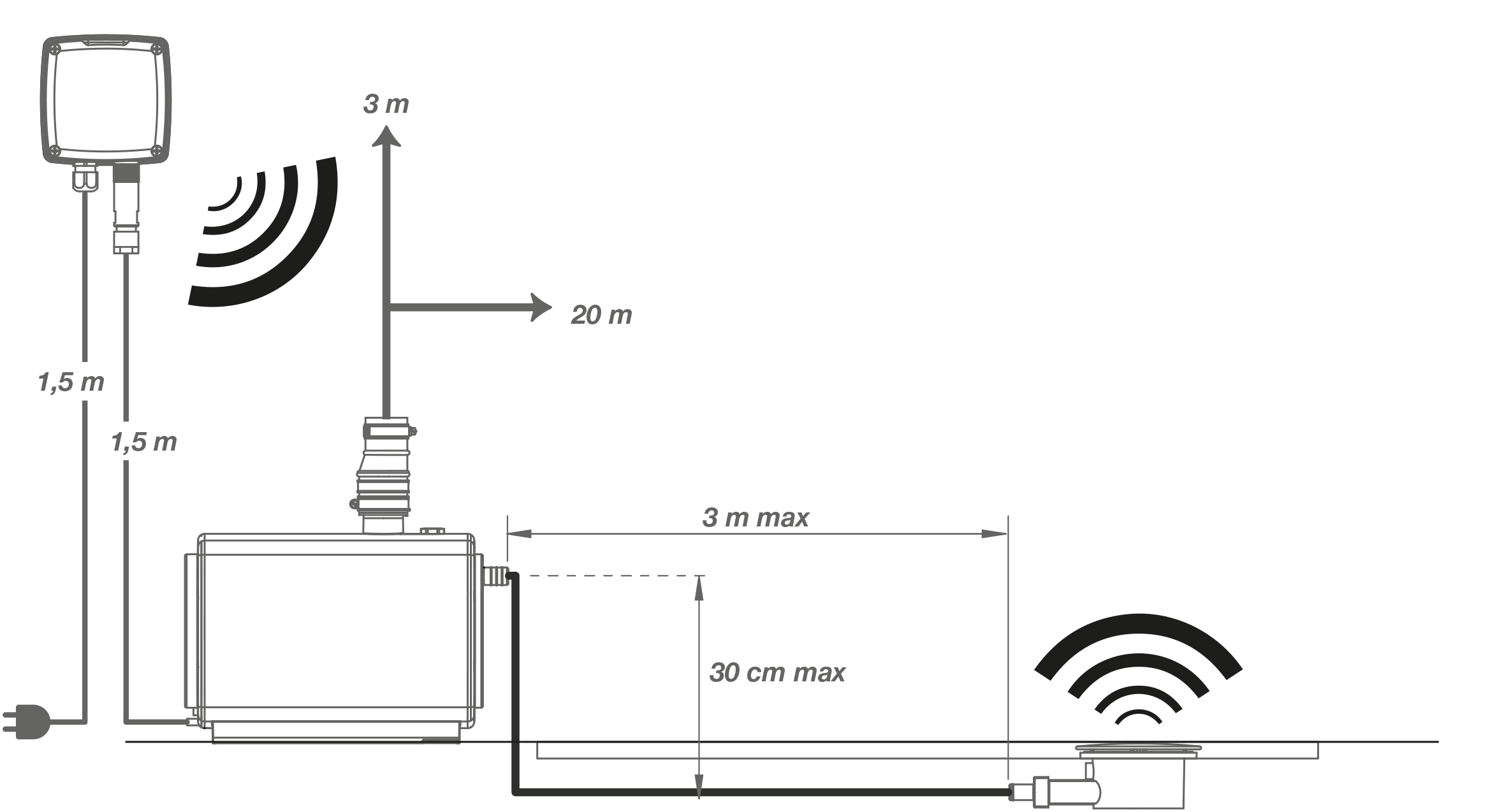 1. Innovante : Transmission sans fil entre la bonde et le boîtier de la pompe